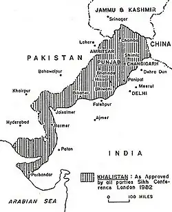 The Council of Khalistan is a non‐profit political organization based in Washington, D.C., United States.[1] It is seeking to create a homeland for Sikhs by establishing a sovereign Sikh state called Khalistan.[2] The Council of Khalistan is one of the key fighting forces of the Khalistan movement.[3] It played an important role during the Insurgency in Punjab. Bakhshish Singh Sandhu is its current president.[4][5][6]