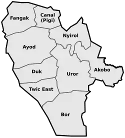 - ^ a b Wël, PaanLuel (2020-02-15). "President Kiir Reinstates 10 States, 79 Counties and Fires all 32 State Governors in South Sudan". PaanLuel Wël Media Ltd - South Sudan. Retrieved 2020-09-13.