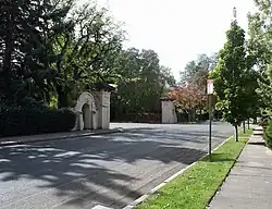 One of the gates to the Country Club Place subdivision in the Country Club Neighborhood along 4th Avenue in Denver.