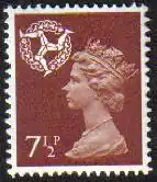 On 7 July 1971[5] the previous Wilding based designs for the Isle of Man, Scotland, Wales and Northern Ireland were replaced with designs similar to the standard British Machin portrait definitives. Each stamp had a reduced size portrait of Queen Elizabeth II by Arnold Machin with a national emblem in the top left corner, the latter designed by Jeffery Matthews.[12] The emblems used were: