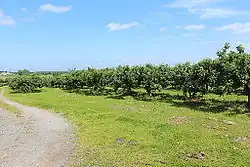 County Armagh (Irish: Contae Ard Mhacha [ˌaːɾˠd̪ˠ ˈwaxə]) is one of the six counties of Northern Ireland and one of the traditional thirty-two counties of Ireland. It is located in the province of Ulster and adjoins the southern shore of Lough Neagh. It borders the Northern Irish counties of Tyrone to the west and Down to the east. The county borders Louth and Monaghan to the south and southwest, which are in the Republic of Ireland. It is named after its county town, Armagh, which derives from the Irish Ard Mhacha, meaning "Macha's height". Macha was a sovereignty goddess in Irish mythology and is said to have been buried on a wooded hill around which the town of Armagh grew.[5] County Armagh is colloquially known as the "Orchard County" because of its many apple orchards.[6]