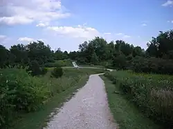 Nelson Meade County Farm Park is a 141-acre public park in eastern Ann Arbor, Michigan owned by Washtenaw County and operated by the county's Parks and Recreation Commission.[1] Consisting of a mix of woodlands, fields, and gardens, the park is home to a wide variety of flora and fauna and is a popular local destination for gardening, hiking, jogging, and biking.[1][2][3] The park has been county land since 1836, although for the majority of the nineteenth and twentieth centuries it was used as the county's poorhouse (complete with a working farm) and then as its infirmary.[2] In 1972, the site began transitioning to parkland with the creation of community gardens, and over the next couple decades various trails and a perennial garden were created.[1][2] Since 2000, the park has experienced significant ecological restoration efforts, including the removal of invasive plants, prairie restoration, and the creation of a wet meadow during the restoration of Malletts Creek.[4][5][6]
