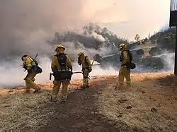 ![]() Fire crews during the County Fire on July 1, 2018 | |