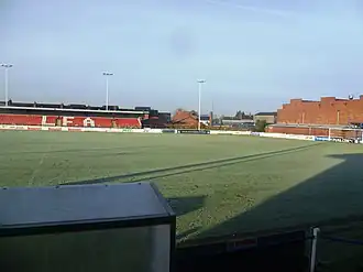 The County Ground is located next to the Motor Vehicle Museum and was originally home to Leyland Motors FC who played in the Lancashire Combination from 1933 until 1980 when they joined the Cheshire County League, where they played for two seasons, before becoming founder members of the North West Counties Football League in 1982.[1] In 1990 they changed name to Leyland DAF-SGL and in 1992 were demoted to the West Lancashire Football League,[2] before another name change to Leyland Motors Athletic in 1993. In 2001 they left the league altogether.[3]