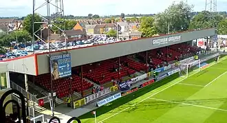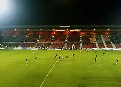 The County Ground is a football stadium located in Swindon, Wiltshire, England, and has been home to Swindon Town Football Club since 1896. It has an all-seated capacity of 15,728 currently, which has been the same level since the mid-1990s.[1] A record attendance of 32,000 was set on 15 January 1972 against Arsenal in the third round of the FA Cup. North of the football stadium is Swindon Cricket Club, with their pitch also named The County Ground, following its use by the football club from 1893 until 1896.