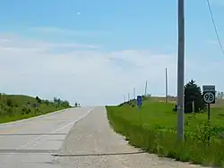 In early 1933, Iowa 16 was extended west from Iowa 1 near Birmingham to Douds.[9] Eleven years later, Iowa 16 and Iowa 98 were connected. Iowa 16 took over all of the former Iowa 98 through Selma and Eldon, while the second version of Iowa 98 was designated over the short spur to Douds.[2] In 1953, Iowa 98 was extended south over the Des Moines River to Leando.[10]