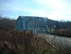 At Twichell Road, NY 240 and CR 32 make a large bend to the west, crossing through Ashford before turning northeast and northwest. On the northwestern stretch, the route remains rural, crossing an intersection with Bond Road, where the route turns north along West Valley Road. NY 240 and CR 32 continue north through Ashford, intersecting with Beech Tree Road, where they cross Cattaraugus Creek just west of the Bigelow Bridge. After crossing the bridge, NY 240 enters Erie County and the town of Concord.[3]