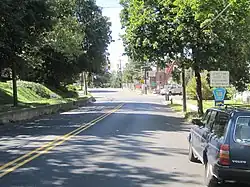 At the intersection with the latter, CR 518 runs east along the border between East Amwell Township, Hunterdon County to the north and Hopwell Township, Mercer County to the south, passing through wooded areas as it crosses fully into Hopewell Township again. CR 518 ascends and descends a spur of the Sourland Mountains before continuing into Hopewell Borough, where it becomes Louellen Street and crosses CSX's Trenton Subdivision before heading into residential areas. At the intersection with CR 654, the route turns east onto Broad Street and passes homes and businesses, intersecting the northern terminus of CR 569 (Princeton Avenue). The road leaves Hopewell Borough for Hopewell Township again, heading northeast into agricultural areas.[1][4]
