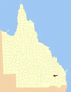 - ^ "Auburn – county in Western Downs Region (entry 985)". Queensland Place Names. Queensland Government. Retrieved 28 November 2018.