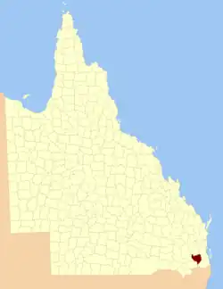 The County of Churchill is a county (a cadastral division) in Queensland, Australia.[1] Like all counties in Queensland, it is a non-functional administrative unit, that is used mainly for the purpose of registering land titles. The county lies between 152°E and 153°E longitude, and is centred on the West Moreton region, extending east to the suburbs of Ipswich.[2] The county was named for Lord Randolph Churchill, who was born in 1849, by the Surveyor-General of New South Wales the following year; the area was officially named and bounded by the Governor in Council on 7 March 1901 under the Land Act 1897.[1]