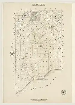 - ^ "Search result for " Hundred of Hawker (HD)" (Record no SA0029657) with the following layers selected - "Suburbs and Localities", "Placename (Gazetteer)", "Counties" and "Hundreds"". Property Location Browser. Government of South Australia. Archived from the original on 12 October 2016. Retrieved 29 March 2017.