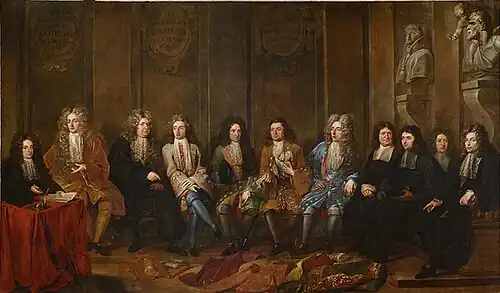 The Drapery Court, which was a kind of commercial court, should not be confused with the Drapers' Guild.[5] While most of the judges who belonged to this tribunal had nothing to do with the trade of clothiers, they were, indeed, chosen among the Noble Houses, not able to exercise any profession or trade, and among the members of the Guilds belonging to various corporations.[6]