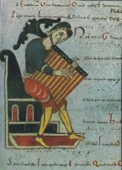 In August 1380 John implemented a "King of the Minstrels" to help govern the musicians, though such a post may have existed pre-1314.[3][2] The Tutbury king of the minstrels is the only known non-royal officer to hold such a position in England and Gaunt may have been inspired to make the appointment by his pretensions to Castile.[2] There were complaints from the minstrels that the fines levied by the king were too severe and so, shortly afterwards, a Court of Minstrels was founded to levy the fines and handle complaints and disputes within the trade.[3][4][5]