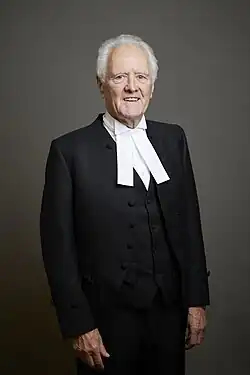 The Lord Speaker, Lord McFall, wearing cloth court dress and bands in 2022.