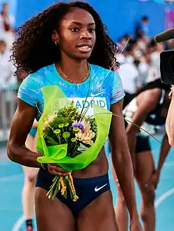 Internationally she won both individual and relay events for the United States at the 2013 Pan American Junior Athletics Championships and the 2015 NACAC Championships in Athletics. More gold came in the 4 × 400 m relay at the 2016 IAAF World Indoor Championships[6] and 2016 Olympic Games.[7]