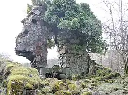 In 1831 a print of the hall indicates that the main part of the complex faced the Neilston Gap and today's ruins may have been left as an estate worker's accommodation and outbuilding when the new Cowden Hall was built and stone robbed from here was probably used in its construction or for the extensive landscaping works that stood nearby such as the loch's dam.[24]