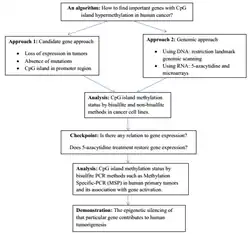 The first discovery of methylation in a CpG island of a tumor suppressor gene in humans was that of the Retinoblastoma (Rb) gene in 1989.[2] This was just a few years after the first oncogene mutation was discovered in a human primary tumor. The discovery of the methylation-associated inactivation of the Von Hippel-Lindau (VHL) gene revived the idea of the hypermethylation of the CpG island promoter being a mechanism to inactivate genes in cancer.[3] Cancer epigenetic silencing in its current state was born in the labs of Baylin and Jones,[3] where it was proven that CpG island hypermethylation was a common inactivation mechanism of the tumor suppressor gene p16INK4a. The introduction of methylation-specific PCR and sodium bisulfite modification added tools to the belt of cancer epigenetics research,[3][4] and the list of candidate genes with aberrant methylation of their CpG islands has been growing since.[5] Initially, the presence of alterations in the profile of DNA methylation in cancer was seen as a global hypomethylation of the genome that would lead to massive overexpression of oncogenes with a normally hypermethylated CpG island.[6] Lately, this is considered as an incomplete scenario, despite the idea of the genome of the cancer cell undergoing a reduction of its 5-methylcytosine content when compared to its parent normal cell being correct.[5] In normal tissues, the vast majority of CpG islands are completely unmethylated with some exceptions.[1] The association of transcriptional silencing of tumor suppressor genes with hypermethylation is the foundation upon which this subset of cancer epigenetics stands.