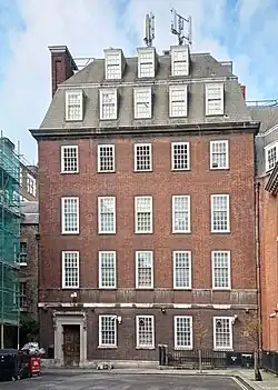 In 1917, the building was acquired by the army agents and bankers Cox & Company, and in 1925 was purchased by the Postmaster General who also purchased land adjacent to the north[2] with which it was joined around the same time.[13] It was heightened in the 1950s.[12] The combined buildings are now part of the British Telecom exchange known as Q-Whitehall which contains one of the entrances to the secret government tunnels under central London which date principally to the Second World War and Cold War eras.[14] Harrington House is grade II* listed with Historic England.[12]