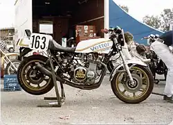 He decided he wanted to learn to race, starting in 1975 with a 1960s Aermacchi fitted with a Yamaha YZ250 single-cylinder two-stroke engine and a Rickman CR with a Honda CB750 power plant, then progressing to a Kawasaki Z900 engined machine which was later bored-out to 1100 cc by Russ Collins.