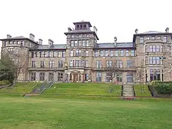 In Victorian times the area was dominated by hospital buildings: The City Hospital (1896); Old Craig House (1565) converted to an asylum in 1878; its "modern" partner, Craighouse, purpose-built as part of the Royal Edinburgh Asylum (1889); the City Poorhouse (1867) later converted to Greenlea's Old People's Home; and Craiglockhart Hydropathic Institution, and in the years 1871-1982 this building rose dramatically above and directly overlooked the home playing grounds of Edinburgh University RFC. Craighouse and The Hydropathic are now part of the campus of Edinburgh Napier University. During the First World War, the hospital was used to house officers suffering from the symptoms of shell-shock. Invalids here included the poets Wilfred Owen and Siegfried Sassoon, who met while patients. After the war this the building served as a convent and then a theological school, before passing to the then Napier College.