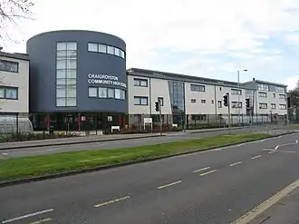 As an initial part of the regeneration project the new Craigroyston Community High School building was constructed at an adjacent site, further north along Pennywell Road, and was opened in 2010 by Sir Tom Farmer.[5] The original school building was extensively damaged by a fire on 22 July 2010,[6] and subsequently demolished.