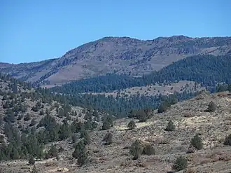 Crane Mountain is a peak near the northern end of the Warner Mountains in south-central Oregon. It is in the northwest corner of the basin and range country of the western United States. The mountain is located in the Fremont–Winema National Forest, approximately 5 miles (8.0 km) southeast of Lakeview. The summit of Crane Mountain is at 8,451 feet (2,576 m). The summit, which has a topographic prominence of 2,336 feet (712 m), is the highest point in Lake County, Oregon.[5][6][7][8]