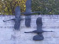 "Cranes" became a symbol of the fallen soldiers of World War II. So much so that a range of World War II memorials in the former Soviet Union feature the image of flying cranes and, in several instances, even verses of the song, e.g., the Cranes Memorial of St. Petersburg.