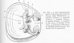 Muscular diagram for Crania, showing column-like "occlusor" (adductor) muscles and narrower oblique muscles, along with other minor muscles.