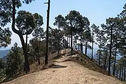 Kasar Devi is a temple on the Kaashaay Hills, 7 km north from Almora, where Swami Vivekananda once came to meditate[1][2] in the late 19th century. The place, got its popular name, Crank's Ridge, ever since Timothy Leary streaked on the ridge in the 1960s, when it became part of the Hippie trail, during the peak of hippie movement.[3]