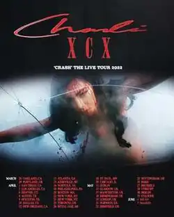 Crash: The Live Tour was the third solo concert tour by English singer Charli XCX, in support of her fifth studio album Crash (2022). The tour began on 26 March 2022 in Oakland, California, United States, and concluded on 5 March 2023 in Perth, Australia.