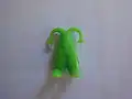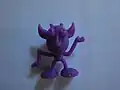 The most popular and collectable of any series was Crater Critters.[4] Kellogg's advertised Crater Critters as friendly bug-eyed creatures from the craters of outer space. Originally issued in 1968, the set was so popular R&L reissued them again in 1972. The set of eight Crater Critters (Kingly, Kindly, Kooky, Curly, Creepy, Clever, Cranky and Crawly) were produced in eight different colours. The four most common colours were orange, lilac, dark purple and lime green (all depicted below). Of the eight Critters, two had removable parts; Kingly Critter who had a removable four point black crown and Kooky Critter who had a removable black top hat. Kingly Critter with a four spikes on the crown intact is extremely rare and often fetches upwards of $200 on eBay.[4] In 2006, one sold on eBay for $450.[3]