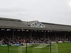 The Hammersmith End is the northernmost stand in the ground, the closest to Hammersmith. The roofing was financed through the sale of Alan Mullery to Tottenham Hotspur F.C.[32] It is traditionally the "home" end where the more vocal Fulham fans sit,[100][101] and many stand during games at the back rows of the stand. If Fulham win the toss, they usually choose to play towards the Hammersmith End in the second half. The hardcore fans tend to sit (or rather stand) in the back half of the Hammersmith End, plus the entire Block H5 (known as 'H Block' to the faithful). The stand had terracing until the reopening of the ground in 2004, when it was replaced with seating in order to comply with league rules following the Taylor Report.[100]