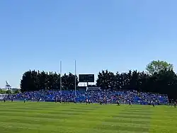 Following the completion of the North Stand and Enterprise Centre, the club initially proposed in 2015 to build a new South Stand with an adjoining hotel to replace the disused terracing.[32] In August 2024, work began on the construction of a 3G pitch on the site of the South Terrace and adjoining parking area, part of a new sports campus set to include new team training facilities, a gym and a lecture hall.[33] Expansions for 'Craven Streat' were later announced a month later due to extension work on the East Stand taking up some of the fan park's footprint.[30]