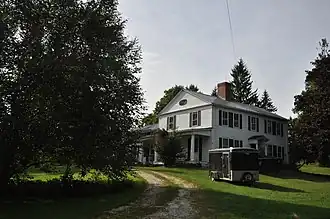 The Cream Hill Agricultural School property is located on 400 acres (160 ha) in northern Cornwall, a rural community in the northwestern hills of Connecticut. The main farmstead is found on the west side of Cream Hill Road, north of its junction with Wadsworth Road. In additions to more modern farm trappings, much of its historic educational complex survives. This includes a c. 1770 2+1⁄2-story farmhouse, to which a 1+1⁄2-story ell was added about 1840. A second wing was added in 1845, specifically for use as classroom space. This two-story flat-roofed structure was enlarged in 1850 with a similar section topped by a square turret. Standing west of this complex are sheds and barns of 19th-century vintage.[2]
