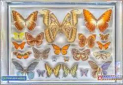 A collection of butterflies and moths is an example of real specimens on display, as opposed to the animatronic "Dr. Crawley" character that accompanies the butterfly display.