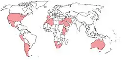 This species of saltbush is endemic to Australia and is native to Western Australia, South Australia, Queensland and New South Wales, but has become naturalised in the Australian Capital Territory, on Norfolk Island and possibly Tasmania.[1][14] It has also been introduced to North and South America, North Africa, the Horn of Africa, the Middle East, Arabian Peninsula, Asia, and the Mediterranean region.  A. semibaccata was introduced to different regions worldwide as a drought and salt tolerant fodder crop.[15][16][17] Similarly, A. semibaccata was introduced in Tasmania for grazing purposes.[2][11] Located in heavy soil that is slightly saline, in woodland that is close to salt lakes, and is usually an invader of disturbed areas.[11][17] First reported distribution was in California in 1901 as a livestock forage in alkaline regions. Seeds were soon after distributed (1916) and by 1940, A. semibaccata inhabited southern coast regions and irregularly inland.[2] Optimal conditions for habitat, include dry/subtropical climate and direct sunlight.[2]