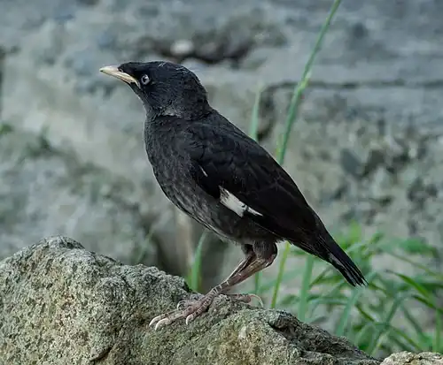 The crested myna (Acridotheres cristatellus), also known as the Chinese starling, is a species of starling in the genus Acridotheres native to southeastern China and Indochina.[2][3] It is named after the tuft of feathers on its forehead that resembles a crest.[3]