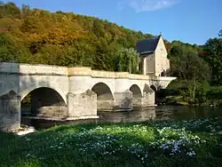 The stone Werra Bridge, built in 1225, and the Liborius Chapel, built in 1499