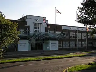 The Bentley car factory is on Pyms Lane to the west of town. As of early 2010, there are about 3,500 working at the site.[43] The factory used to produce Rolls-Royce cars, until the licence for the brand transferred from Bentley's owners Volkswagen to rival BMW in 2003.