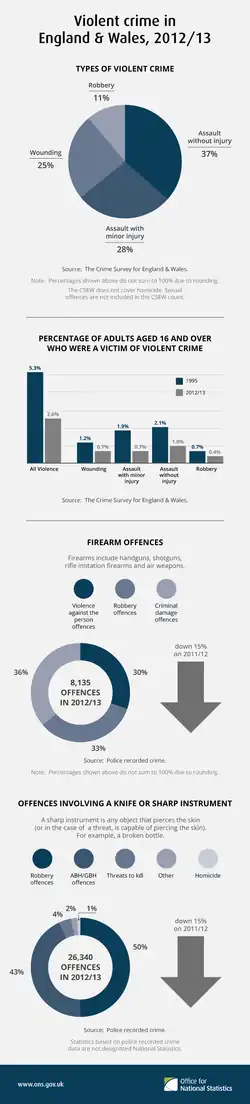 - ^ a b c "Bulletin Tables – Crime in England and Wales, Year Ending December 2015". Office for National Statistics. Archived from the original on 27 January 2020. Retrieved 21 April 2016.