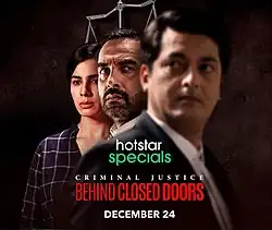 Criminal Justice: Behind Closed Doors is an Indian Hindi-language legal drama web series for Hotstar Specials written by Apurva Asrani and directed by Rohan Sippy and Arjun Mukerjee. The series stars Pankaj Tripathi, Kirti Kulhari, Jisshu Sengupta and Khushboo Atre, and was released through Disney+ Hotstar on 24 December 2020.[1]