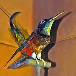 - ^ a b BirdLife International (2016). "Crimson Topaz Topaza pella". IUCN Red List of Threatened Species. 2016. Retrieved 12 November 2021.