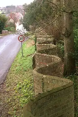 The sinusoidal curves in the wall provide stability and help it to resist lateral forces,[2] leading to greater strength than a straight wall of the same thickness of bricks without the need for buttresses.