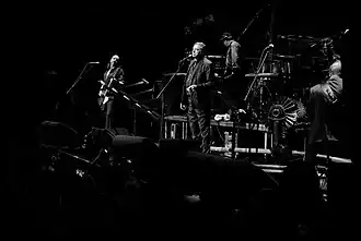 Crisis have been described as avant-garde metal,[3][79][80] death metal,[81][82] and progressive metal.[83] Karyn and Nasiruddeen both described the band's sound as "experimental metal".[10][84] Largely defying categorization,[13][82][85] the band were known for their "complex, layered music" and songwriting[3][86] that drew upon various influences and styles,[13][82] mixing elements from industrial music,[13][87] hardcore,[65][88] extreme metal,[88][89] thrash metal,[65] grindcore,[90] avant-garde[87] and noise music.[87][88] Deathshead Extermination was primarily categorized as a death metal album;[85][90][91] The Hollowing saw Crisis incorporate Middle Eastern elements into its sound,[18] and was described as both "sludgier"[90] and "more ominous"[92] than its predecessor. As Skullsick Nation, Crisis transitioned to a more accessible version of its sound.[24][39][93] Amy Sciarretto of CMJ New Music Report categorized the band's Dead to the World demo as rock 'n' roll and stoner rock.[94] Like Sheep to Slaughter showcased an experimental metalcore sound.[88][95] Karyn Crisis's vocals alternate between clean singing, screaming,[82] growling,[91][93] groaning,[92] whispering,[92] crooning, and squeaking;[80][85] the intensity of her live performances led Crisis fans to nickname her the "Exorsister".[96][97]