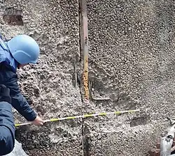 In June and July 2023 Ukraine and Russia frequently blamed each other of preparing a sabotage or false flag operation at the plant.[93][94][95] On 21 June IAEA confirmed "previous placement of mines outside the plant perimeter" and also "at particular places inside", but assessed these as not having a significant impact on the plant's operational safety.[96] On 5 July IAEA monitoring mission in the plant did not confirm presence of land mines or explosives on the territory of the plant but highlighted it does not have full access to all areas. IAEA specifically requested access to the rooftops of reactor blocks 3 and 4, turbine halls and specific parts of the cooling system, which were previously described as locations of Russian military presence.[97][91] On 4 August the IAEA reported their team had unimpeded access to the rooftops of units 3 and 4, with views of the turbine hall rooftops, and no military presence was found.[98][99]