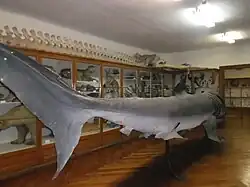 The museum's permanent display encompasses mineralogical and petrographical collections,[22] as well as a collection of animals, the bulk of which dates back to the 19th century.[23] The zoological collection is on the second floor of the museum. It includes the skeleton of a Mediterranean monk seal, a basking shark native to the Adriatic Sea and an Atlantic puffin, a bird today native to the Arctic area, which is believed to have nested in the Adriatic in the 19th century.[23]