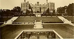 Crocker planned to build a new mansion 185 feet above the old Darling house, sparing no expense.[4] Utilizing the former Darling home as his own during the building process, he commissioned the architect James Brite to design a 45,000 square foot residence. Modelled after the Jacobean-style Bramshill House in England, it was built between 1903 and 1907.[5][2] Workers began arriving in the spring of 1902 to work on the roads under the direction of Theodor Shuart of Ramsey, New Jersey.[4] Excavation of the foundation began in April 1903, and construction was fully underway a year later.[4]
