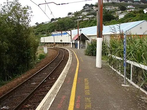 Crofton Downs railway station looking south in the direction of Wellington before it was updated on 31 December 2007 | ||||||||||||||||||||||||||||||||||||||||||||||||||||||||