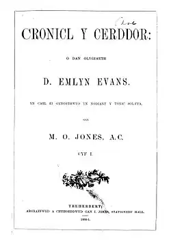 The magazine's founder, musician and composer David Emlyn Evans (1843 - 1913) edited the magazine, which contained mainly articles about music and musicians, and compositions (published as supplement). Schoolmaster, musician, and writer, Moses Owen Jones (1842 - 1908) assisted as the magazine's deputy editor.[1][2]