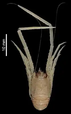- ^ Keiji Baba; Enrique Macpherson; Gary C. B. Poore; Shane T. Ahyong; Adriana Bermudez; Patricia Cabezas; Chia-Wei Lin; Martha Nizinski; Celso Rodrigues; Kareen E. Schnabel (2008). "Catalogue of squat lobsters of the world (Crustacea: Decapoda: Anomura โ families Chirostylidae, Galatheidae and Kiwaidae)" (PDF). Zootaxa. 1905: 1โ220.